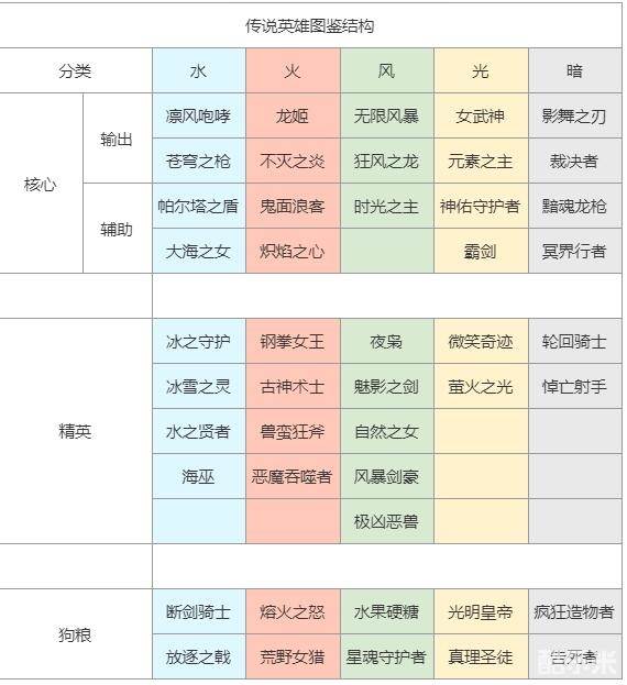 精英,拥有四个技能,强度弱于核心英雄,但容易获取。前中期升星容易,作为队伍主力使用,后期被核心英雄替换,作为升星材料喂给核心英雄升星