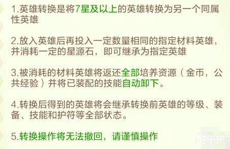 重生与转换是在一个界面中的,如果玩家找不到转换界面,可以在重生的旁边找到。转换可以将七星及以上的英雄转换成同属性英雄,然后还需要指定材料英雄,以及星源石,才能继承为指定英雄。而转换是无法撤回的,玩家在转换前一定要想好再转换。