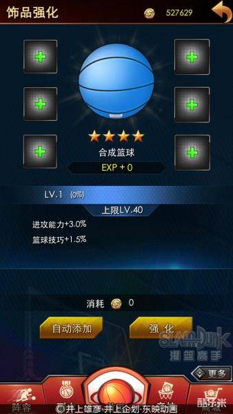灌篮高手》中的饰品,是提升卡牌实力的重要途径之一,提升饰品的属性会大幅增加卡牌的属性。提升饰品的属性需要通过“升阶”和“强化”。升阶的要求比较高,所以强化就成了提升饰品属性的常规途径。