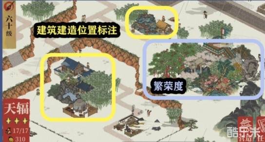 建造-装饰中,可消耗铜钱摆放树累积繁荣度。