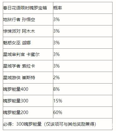 《英雄联盟手游》春日花语限时魄罗宝箱,将于2022年3月11日00:00正式上架商城,春日花语限时魄罗宝箱奖励抽取概率公式如下: