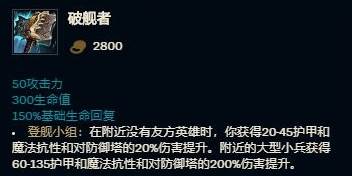 4、对手的上单很难击杀你,如果他们敢去支援的话,你在一分钟内就能推到高地了。破舰者提供的大量抗性和生命值,也让你在面对gank时更容易存活下来。