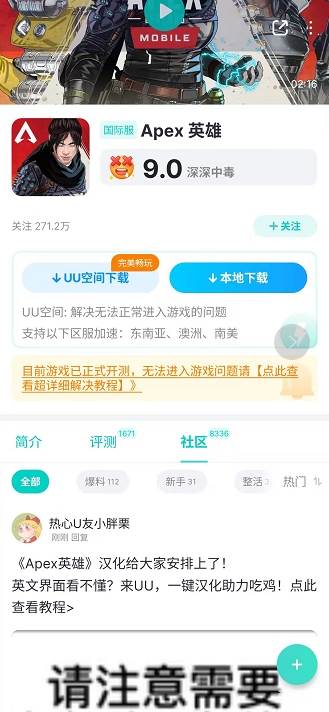 第二步:下载游戏安装旧包,前往UU手游加速器的apex英雄社区内就能找到下载地址。