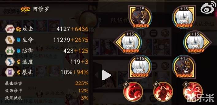 (低配)一速破荒阿修罗攻攻暴+二速狂荒茨木速度>115+因幡纯散件暴伤+不见岳纯散件防御