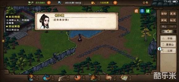 往西北方向走找到云峥,【摇醒】两次,读信,再【摇醒】两次,对话。搬麻袋时注意,需要走几格等三秒buff消失,不然会越走越慢,最后强制你休息,更费时间