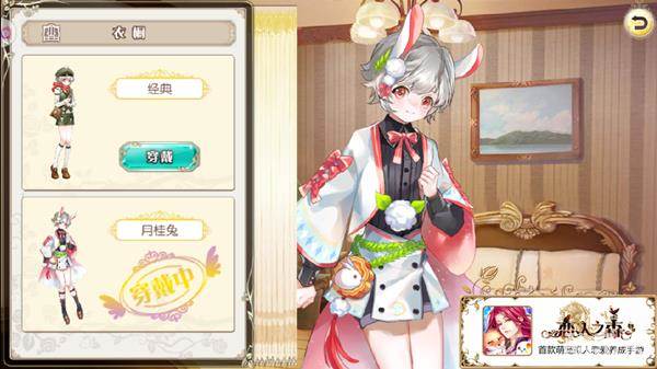 如何换上这套萌萌的套装?很简单,进入你的后宫,前往尼尔殿下的单人界面,最下面一行按键的最左边,就是衣橱的位置啦!打开衣橱,萌萌的“月桂兔”套装已经为你准备好,拉上帘子,静静的等待尼尔殿下换好衣服吧!