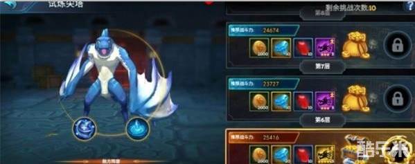 获取资源:通关试炼尖塔可以获得大量资源,包括金币,宝石,进化石,龙碎片等