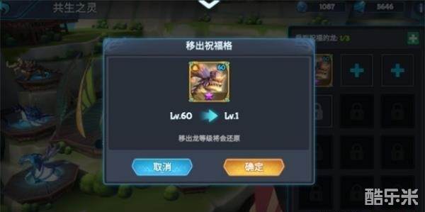 4.放入祝福格内的龙,在移除之前,无法手动升级
