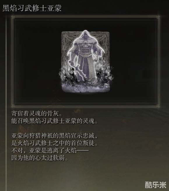 艾尔登法环黑焰习武修士亚蒙怎么样?黑焰习武修士亚蒙虽然有名字但是不是传说骨灰,那么它到底好不好用呢?下面就让小编带大家一起看看吧!