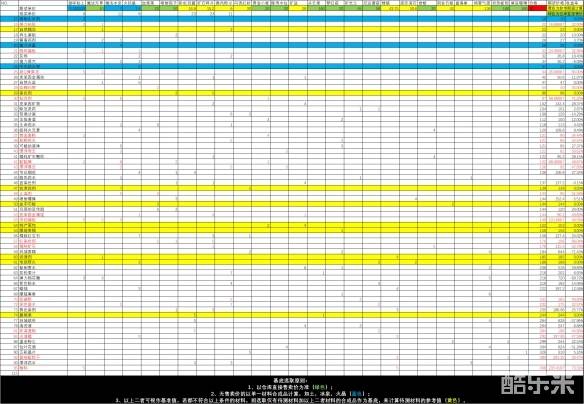 将来有更多材料之后会慢慢更新这里黄色栏是用来算对应材料的期望单价的,相当于基准值。