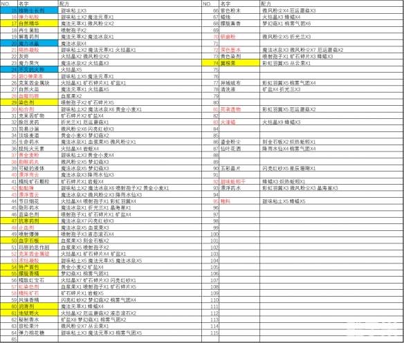 诺弗兰物语炼金配方有哪些?