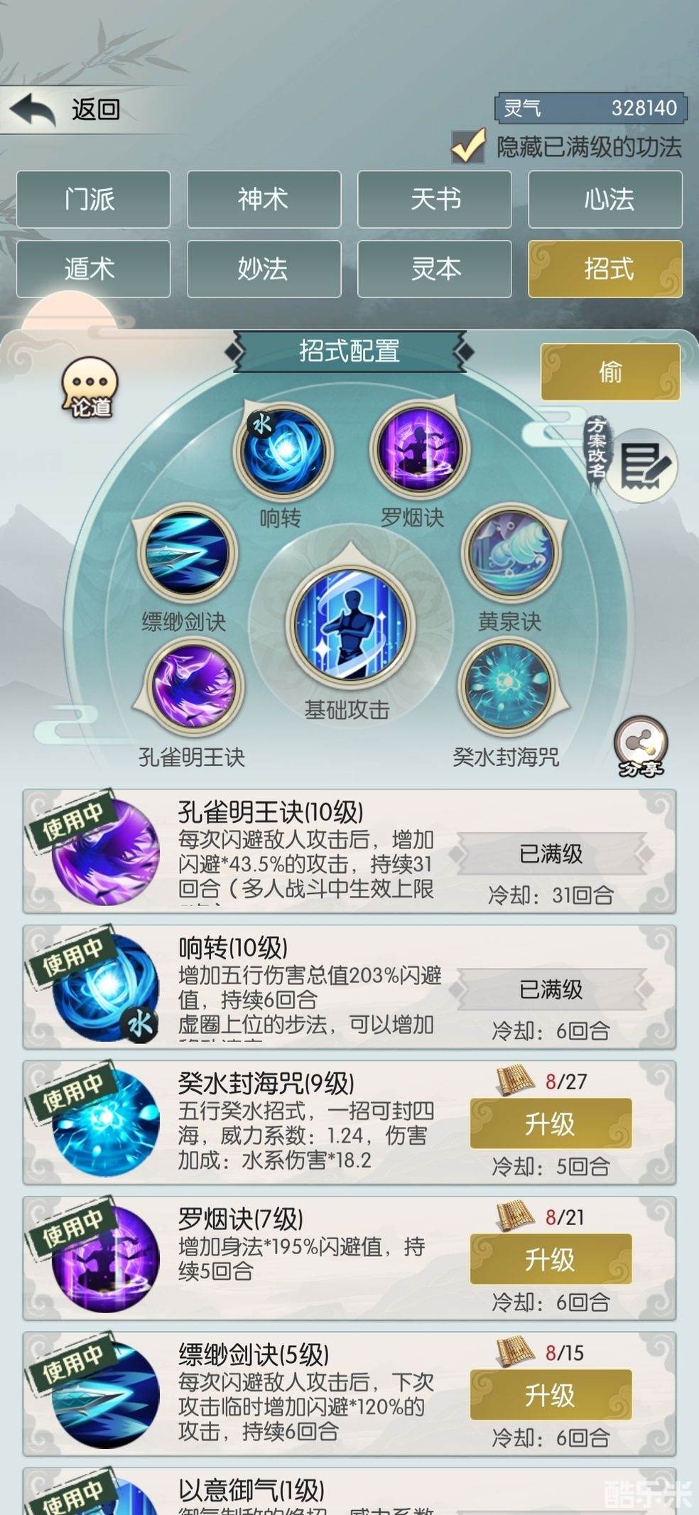 这套技能在放完罗烟第五回合闪掉之后,第六回合不被暴击正好是百分之十以下的血量,这时候我九级癸水+会心也能秒杀。