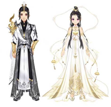 与优化前相比,优化后的男装减少了些金色纹饰,在黑色内衬的衬托下多了一种厚重感,更为高贵奢华;女装缥缈的长裙则装饰了许多金色纹饰,流光在绸缎舞动散发着更迷人的气息。