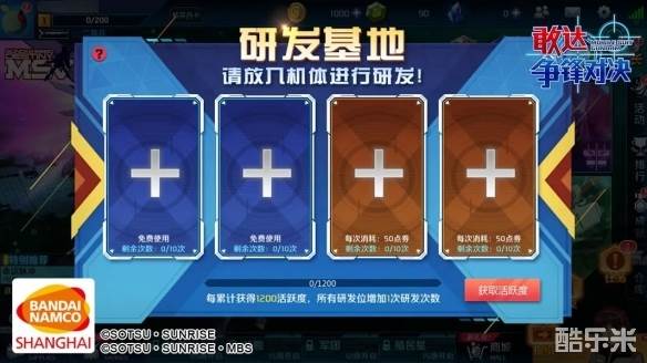研发进度则需要通过战斗进行累积。不同的战斗类型以及战斗的胜负结果均会影响增加的研发进度,同时选择多个机体进行研发时,可同时增加多个研发位的进度值。当研发位置的进度值到达100%时,需要大家手动领取奖励,奖励将根据研发所选的机体获得对应的奖励(随机获得对应的机体碎片或机体对应的改造材料)