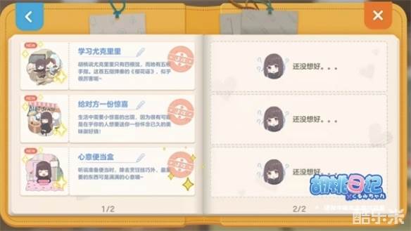 大家呼声很高的亲密度升级来了!亲密度升到10级后,将开启全新的“心愿清单”功能!胡桃在日常生活中经常会冒出许多千奇百怪的新想法,多亏有你的帮助,这些脑洞才会转化为小目标去一步步实现!胡桃会把这个过程全部记录在心愿清单中,你可以随时回顾这些美好点滴!