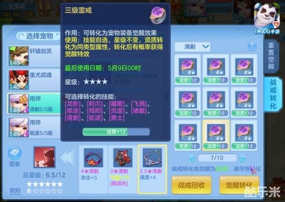 【升星】:宠物装备觉醒技能星级额外增加0.5~1星;单件宠物装备星级可超过4星,但宠物装备总星级不会超过12星