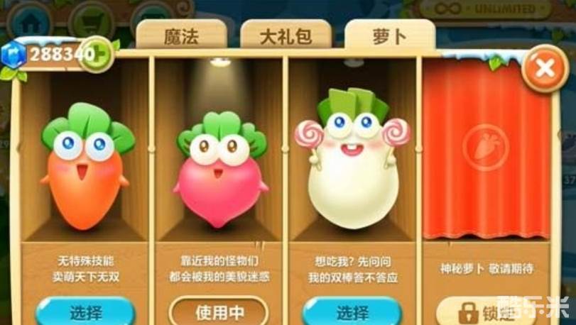保卫萝卜2萝卜都有什么技能?目前,保卫萝卜2一共有3个不同类型的可爱萝卜,如下图所示。