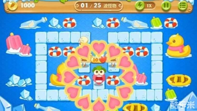 2、 粉红萝卜:每隔5~6秒发出眩晕光波,让怪物停止前进1~2秒时间;