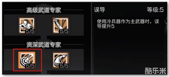 当武士等级达到资深武道专家时可提升误导技能,即使用冷兵器作为主武器时误导值最高提升5点。