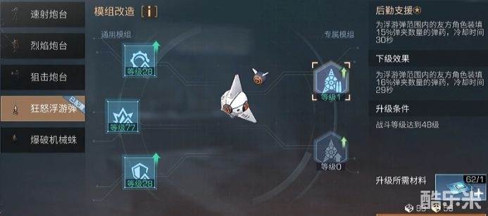 1、战术装备狂怒浮游弹在战斗等级达到54级时即可获得。做为一款战术装备,它的辅助性能比较强,并没有直接输出。