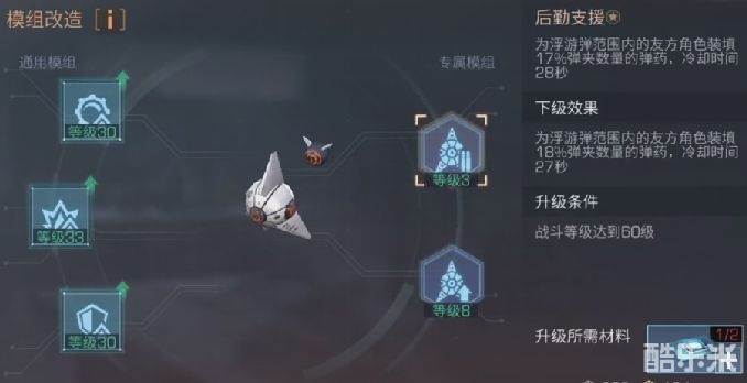 2、刚入手的小伙伴对于狂怒浮游弹的用法可能会比较迷糊,在使用之后,会在地图上显示一个黄色的圆圈,在圆圈范围内狂怒浮游弹会补充我们已使用的子弹数量,而不是直接补充我们储备子弹数量。并且后勤支援,也就是子弹装填的功能冷却时间较长。