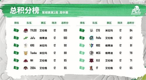 2022 PCL春季赛常规赛第二周的比赛已经结束,各支战队在本周每一把精彩厮杀和痛失机会的背后定会进行更加详细的复盘,提升下周比赛的技战术,为我们呈现更加精彩的对决!究竟是“银河战舰”NH战队再度守住周冠宝座,还是新王加冕?乾坤未定,你我皆是黑马,让我们一起期待下周更加精彩的比赛!