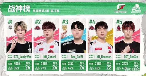 选手榜单:CTG_LuckyWss天神下凡,荣膺本周战神
