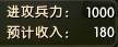 收入:是发兵所带来的收入总和,反应的是攻击能力与兵粮转换成军饷的量
