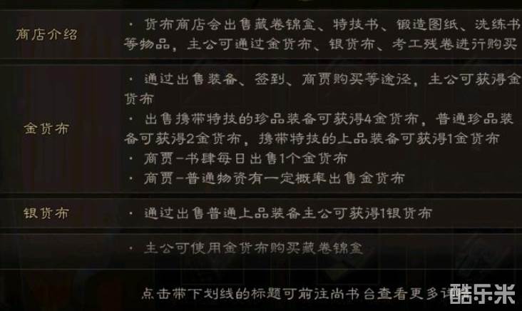 1、获取方式包括签到、购买、出售装备三种。每天书肆可以获得一个金货布,每天商店里概率卖一个金货布,每个月的签到能获得12个