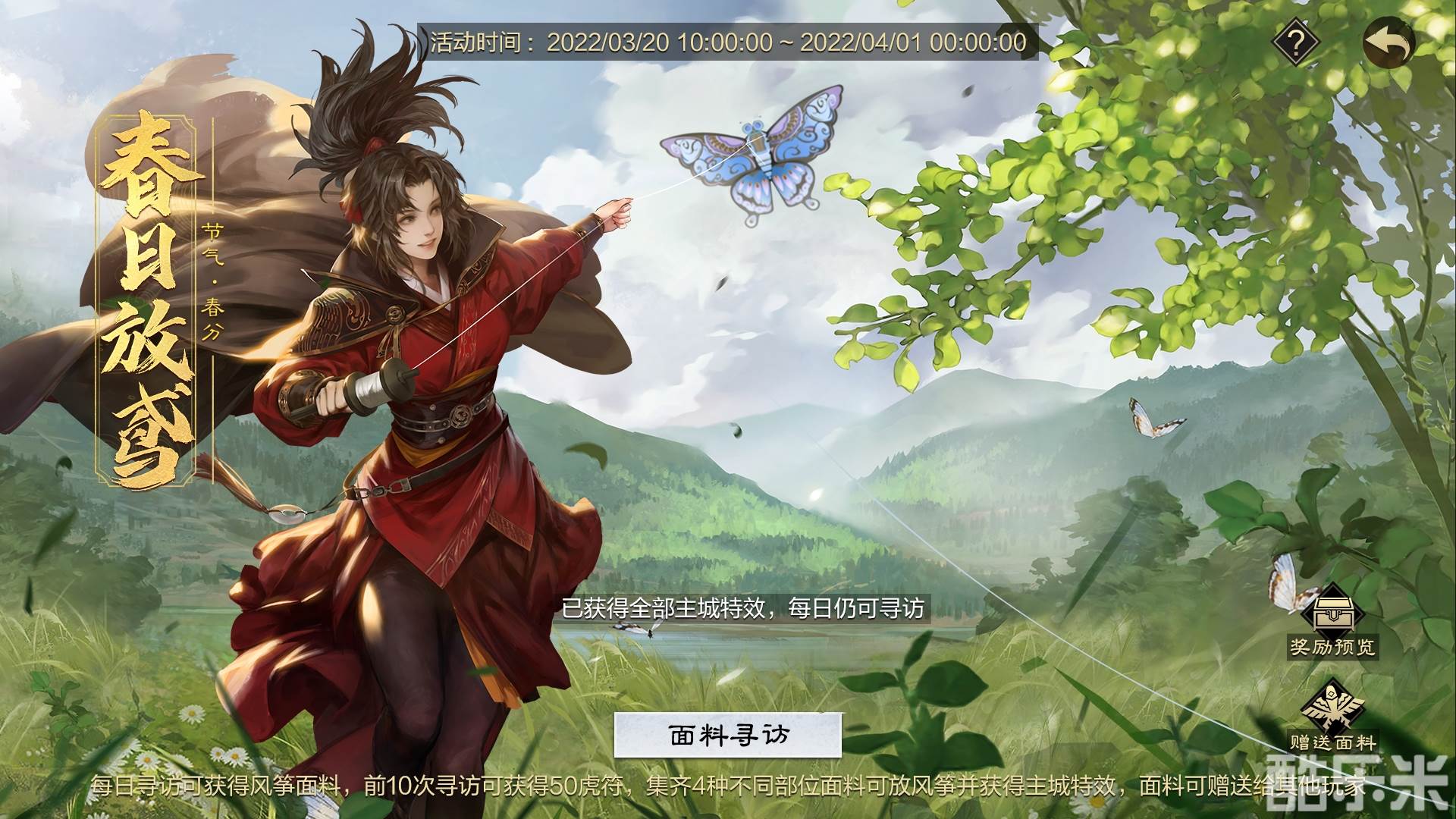 草长莺飞二月天,拂堤杨柳醉春烟。儿童散学归来早,忙趁东风放纸鸢。万物复苏,春分将至,《率土之滨》预祝各位主公春分快乐,并将给各位主公带来春分活动——《春日放鸢》。