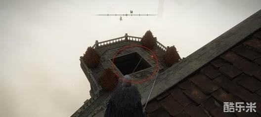 首先传送至渐毁野兽墓(深处),出门左转来到窗口,右转跳上屋顶,红圈处升降梯向下,出门后,红圈标记处凉亭内就是铃兰摘采工的铃珠【3】。