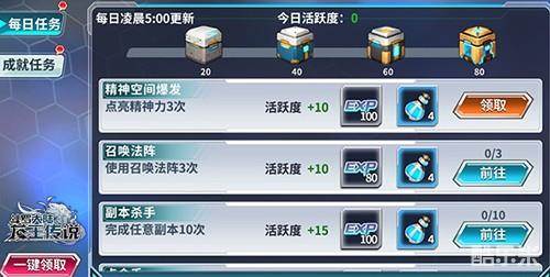 在《龙王传说》手游中,经验的获取至关重要。只有等级高人一等,才能先人一步获取到各种游戏奖励。完成日常任务,可获得可得大量经验值,是提高等级的主要方式。另外,挑战副本也可获得经验值,但需要消耗对应的体力。金币则可以通过挑战升灵台获获。除此之外,玩家每天都可免费领取3次体力,所以银龙王娜儿为大家准备的一日三餐一定不能错过。在升灵台试炼中可获得升灵币,通过特殊召唤可获得魂灵球,而通过捐献宗门魂导科技可以获得宗门币,这些都是相对比较直接的获取途径,大家一定要牢记。