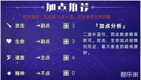 3、加点选择主点速度,副系选额攻击和生命,10点技能可分为4点速度、3点攻击和3点生命;