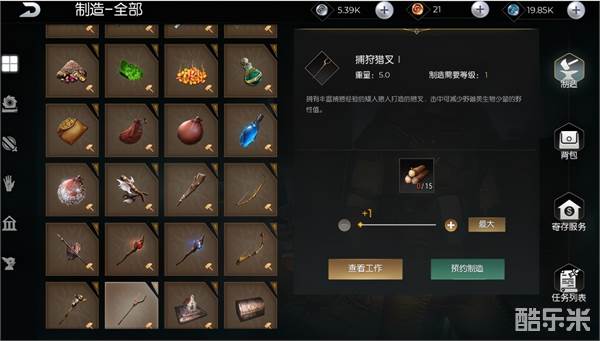 先来说说捕兽猎叉,这也是玩家们最常使用到的驯兽工具,花费15个木头就能制作出来,需要搭配麻醉药剂使用。这种驯兽武器主要是用于驯服陆地野生生物,比方说麋鹿、野猪、鬣狗、熊等生物。