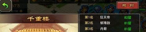 游戏中君主等级达到12级后,可在主城界面中选择“千重楼”点击进入即可 。玩家每天可以免费进入2次,可使用[鲁班令]增加1次进入次数,即每天最多可进入3次,当次数用尽后,当天不可再进入。