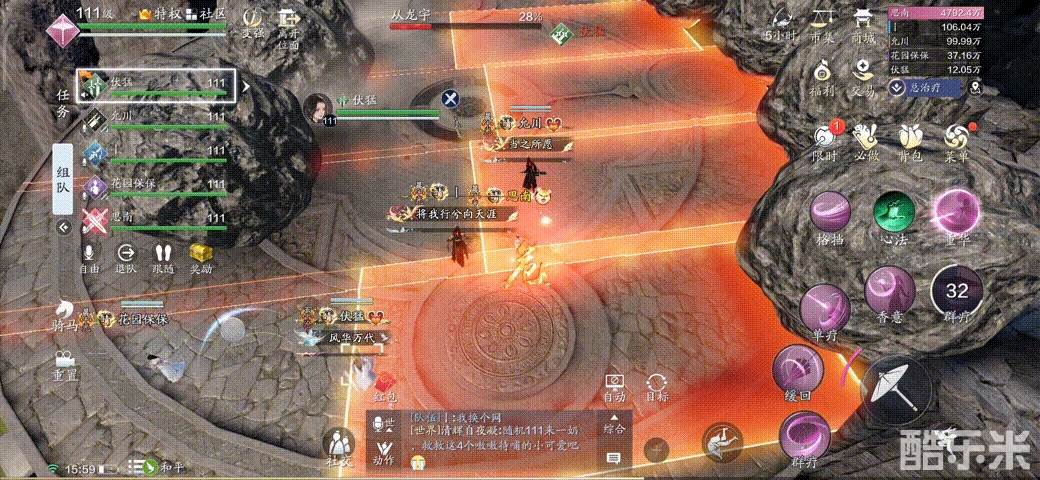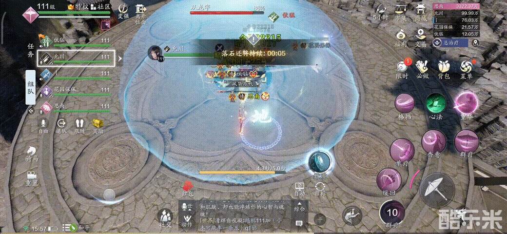 4)乱石阵:BOSS在血量剩余30%的时候释放乱石阵,会有4个陨石向另一侧滚动。这里是短腿职业容易死亡的地方,反应时间也比较短,需要预留好翻滚和穿云。30%血量左右的时候提前落位到BOSS下方,观察乱石滚落的方向利用走位和翻滚找到空隙位置。比较难的就是从一侧飞到另一侧,需要在落石经过自己的一瞬间,就往地图中央走位,然后使用穿云快速抵达对岸,反应慢一点就容易死在路上。
