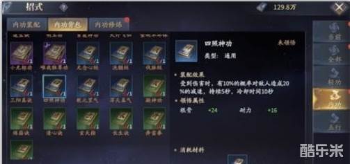 3.内功可以根据获取难易程度自行搭配,前期可以使用绿色、蓝色内功过渡,紫色内功为核心,后期则可以收集金色和红色的稀有高级内功。