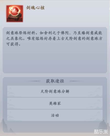 1、地阶以上剑意珠,消耗剑魄心核与灵石进行祭炼;