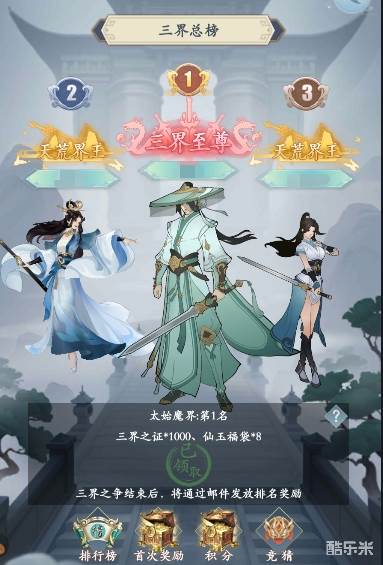 全服可开启三界排名宝箱,获取自己势力对应的排名奖励。三界之证可与三界商店中兑换各类珍稀道具。
