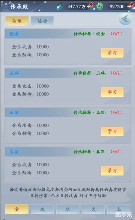 传承殿:在此建筑内,玩家可以通过学习已有的传承道具,提高自己的五行攻击、防御,能大量的提升玩家当前战力,但五行战力目前只在PVP内生效。传承道具获取的途径主要为高品质的宗门任务、宗派大比奖励、拍卖会竞品、商店购买;玩家还可以在此建筑内升级拓展练功房,供弟子平日练功升级,练功房品质越高,获得的经验越多,弟子境界突破的概率越高,练功房的拓展需要花费仙玉。
