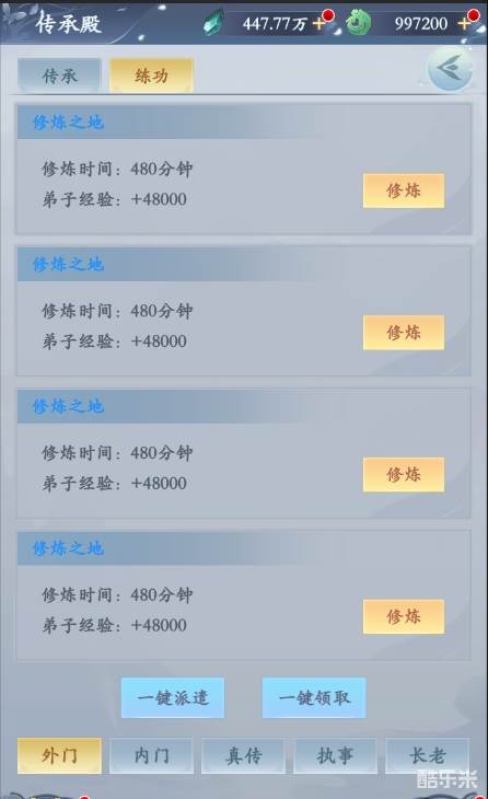 4. 等级作为突破境界的前置条件,可以通过练功房或者喂食弟子丹药提升。