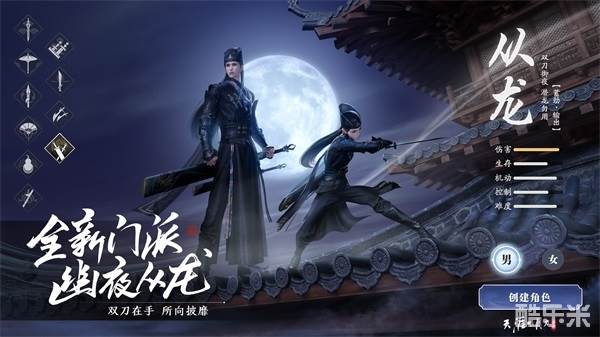 其从天,只听一人调遣;从战,只为胜战而存;从夜,只在暗中活动。行于暗中、双刀御夜,以风雷云从与百兽来朝双套路、及独特的潜行技能飞鸿踏雪与特殊资源·龙芒为少侠带来独特的战斗体验。