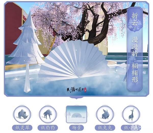 外观还附赠配套动作折云,使用后即可召唤趣味折纸场景摆件。还有趣味折纸动物纸趣系列家具部件也将同步上新,解锁外观将随机获赠一个,不仅可在动作折云场景内通过动作纸趣自由摆放,也可在家园内使用。纸灵犀、纸豹豹、纸兔兔、纸小鹿......快来打造出你的纸趣盛景吧!