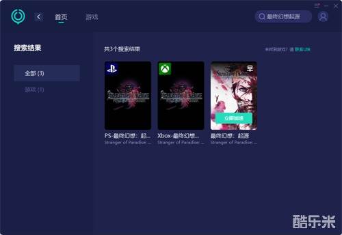 第二步:在加速器内搜索最终幻想起源,选择平台点击立即加速