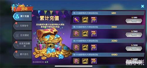 活动期间,驯龙师通过充值获得的大冒险家经验,即可解锁对应奖励。