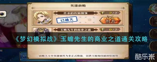 梦幻模拟战玉蟾先生的商业之道怎么通关?在梦幻模拟战游戏中很多玩家还不清楚,玉蟾先生的商业之道的获取方法是什么。接下来就让小编给大家带来《梦幻模拟战》玉蟾先生的商业之道通关攻略,感兴趣的小伙伴们一起来看看吧。
