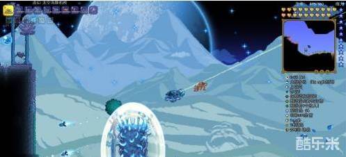 5、有了强大的机动性便可以杀穿克眼,此时可以获得走位神器克盾,还可以做一把恶魔弓,主要目的是配合小丑箭打克脑/世吞,克脑的2阶段则使用迷你鲨压制,打完这两个boss后,就可以做一把镐子挖掘熔岩矿了,它做的弓和盔甲都非常好用。
