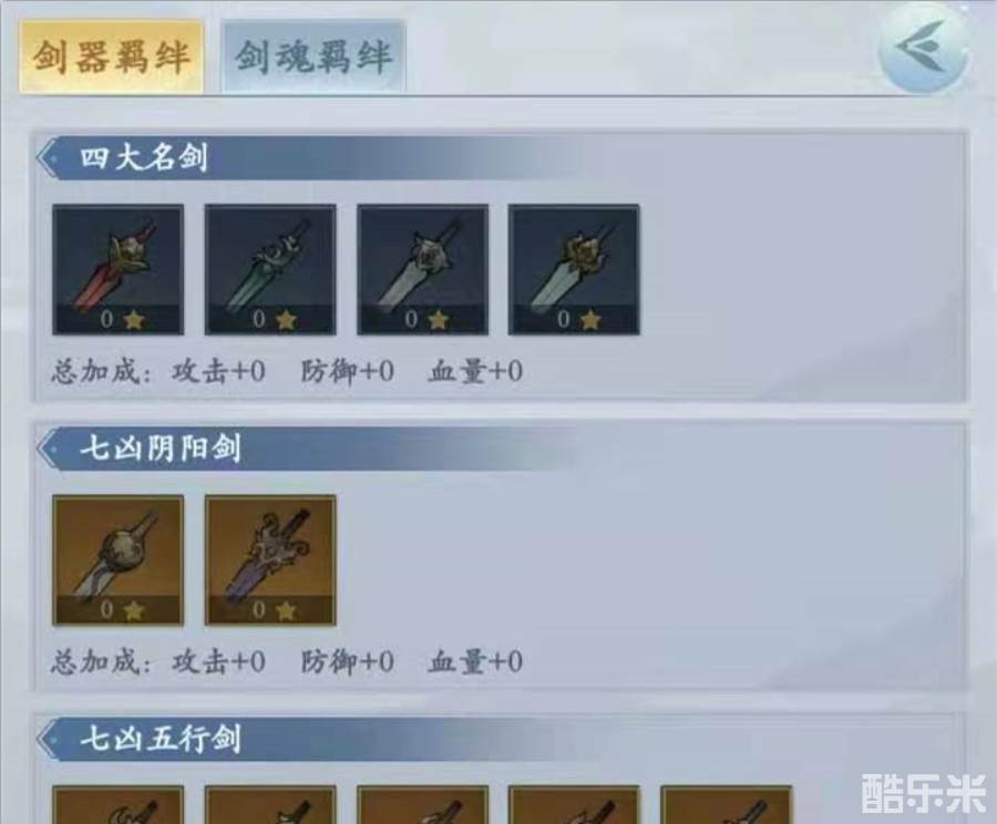 藏剑阁内是有很多的的仙剑剑阵组合,玩家集齐剑阵中的所有仙剑便可激活剑阵属性。同时剑阵仙剑一并升星后,剑阵也会随之升级,剑阵的级数越高,所带有的属性加成就会越明显。