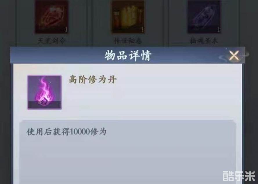 最后一种方法就是在商店直接进行购买,商店内会有一个高阶修为丹的道具,使用之后可获得10,000点修为,一枚高阶修为丹售价为100个仙玉,相对来说价格还是比较便宜的,仙玉可以通过充值以及升级获取。