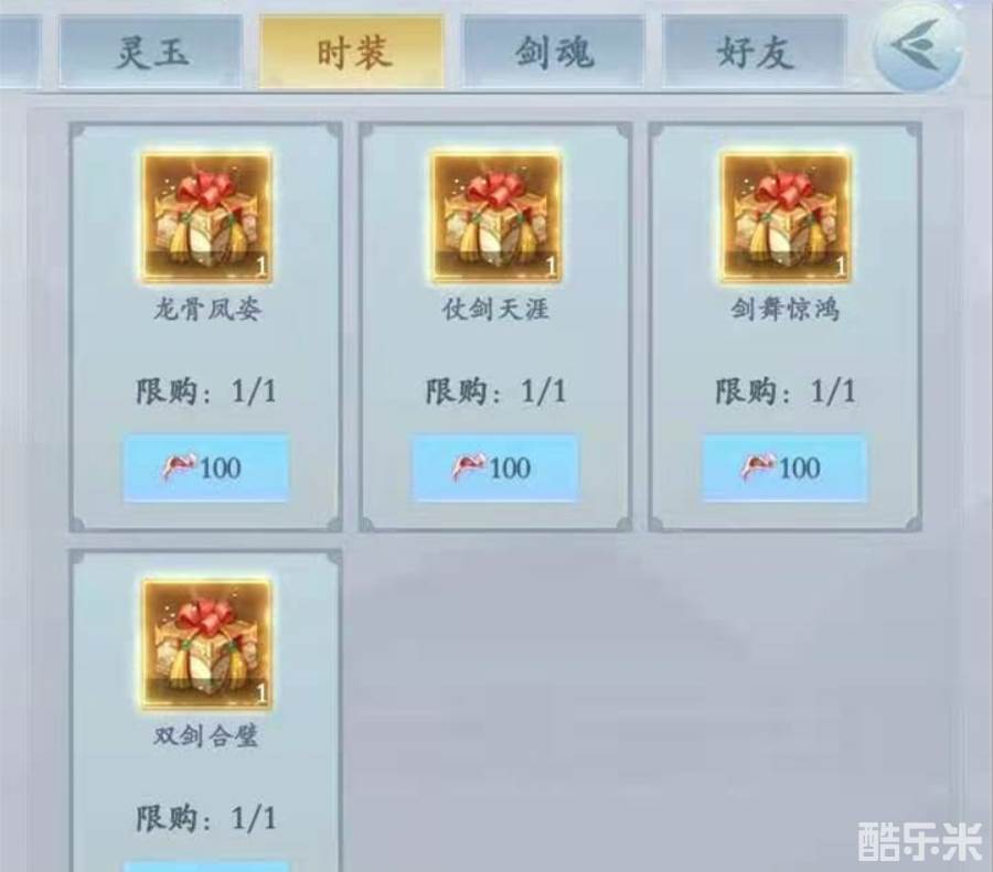 目前的游戏中获取时装的方法一共有三种,第一种方法是通过商店直接购买,游戏主页面选择征服,征服里面会有一个商店的建筑,点击进去之后选择时装板块,玩家就能在里面购买到时装了。商店能够购买的时装一共有四个,分别是龙姿凤采、仗剑天涯、剑舞惊鸿以及双剑合璧。这四款外观都是非常漂亮的,每一款外观都需要消耗100个云纤霞织,云纤霞织可以通过活动获取,商店内所能够购买的时装都是最高品质的,可以给玩家带来一定的属性加成。